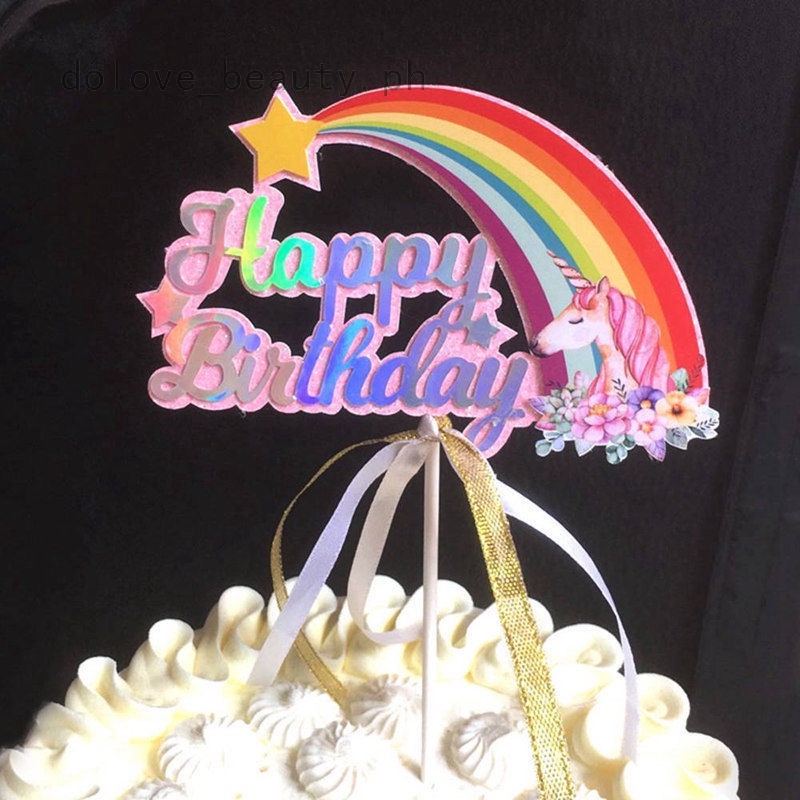 Biling Unicorn Rainbow Happy Birthday Cake Topper Dessert Decor